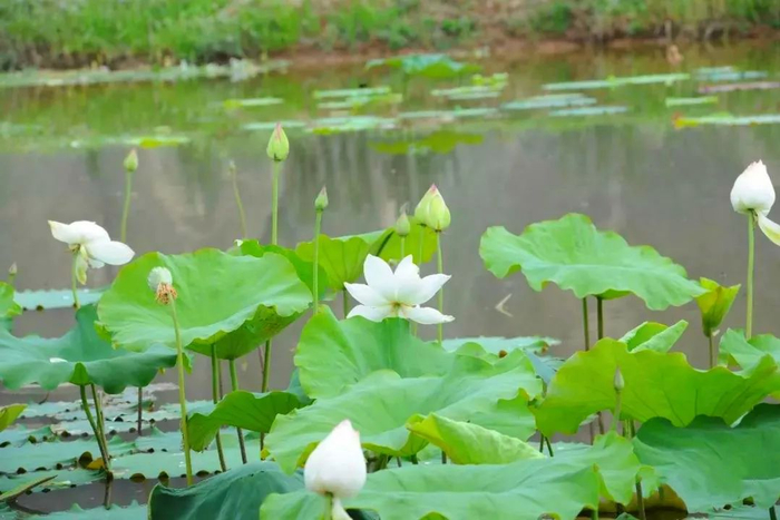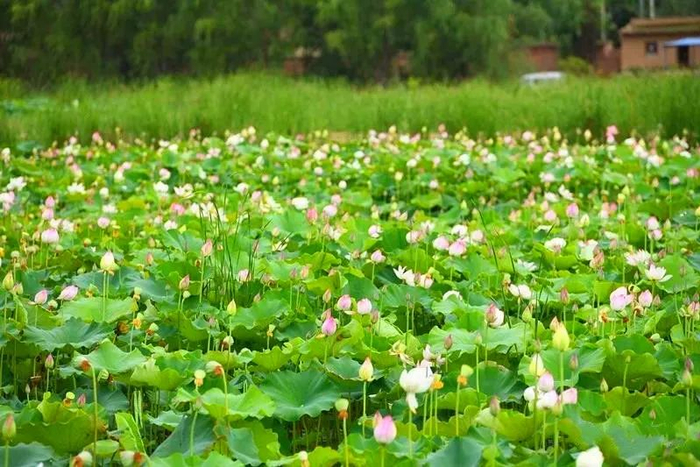 满池荷花竞相开放