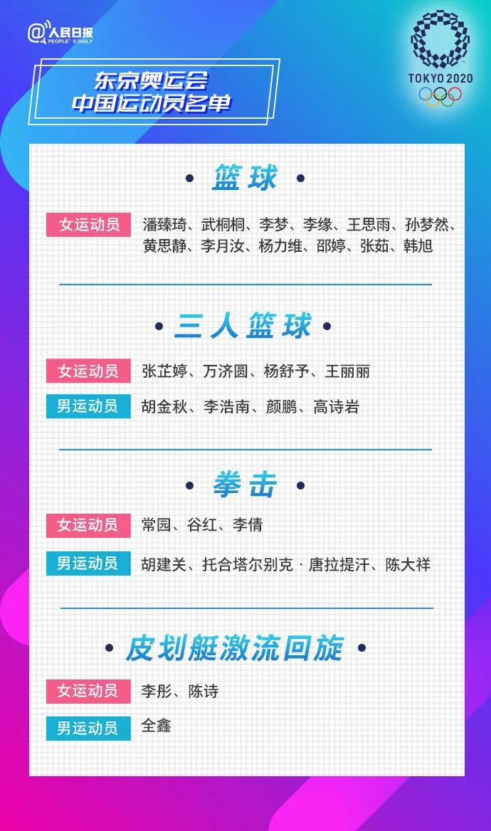 他们将参加东京奥运会