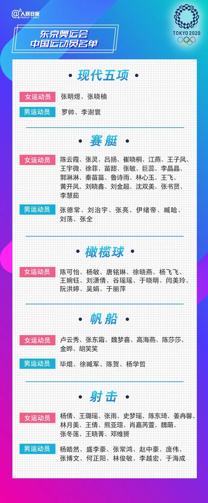 跟小编一起来看431名运动员全名单