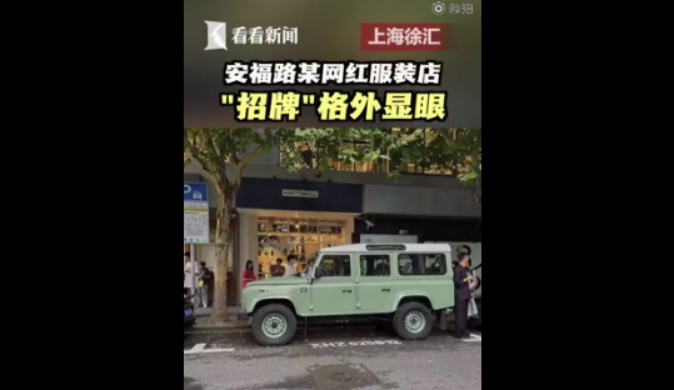上海一网红服装店用路虎当招牌,不惜长期违停,每月罚款过万元。警方已对车主进行约谈教育,目前,该车已不在店外。