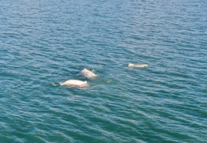 画面太美!一群中华白海豚在福建厦门海域相伴出游。
