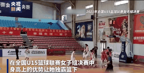 女姚明!在全国U15篮球联赛女子组决赛中,身高2米26的14岁女孩张子宇独霸篮下,暴砍42分夺冠。