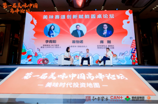 “美味赛道创新赋能圆桌论坛”有三名嘉宾,分别是首钢基金执行董事/参加CANPLUS创办人李青阳,弘章资本创始合伙人翁怡诺,新希望乳业董事长/草根知本总裁席刚。
