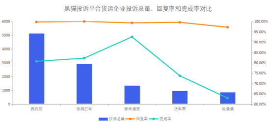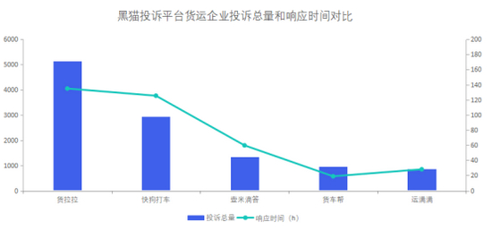 黑猫投诉货运企业投诉数据对比:快狗打车响应时间慢于运满满