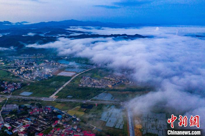 7月16日清晨,江西省瑞金市上空雨后出现平流雾。 马刚 摄