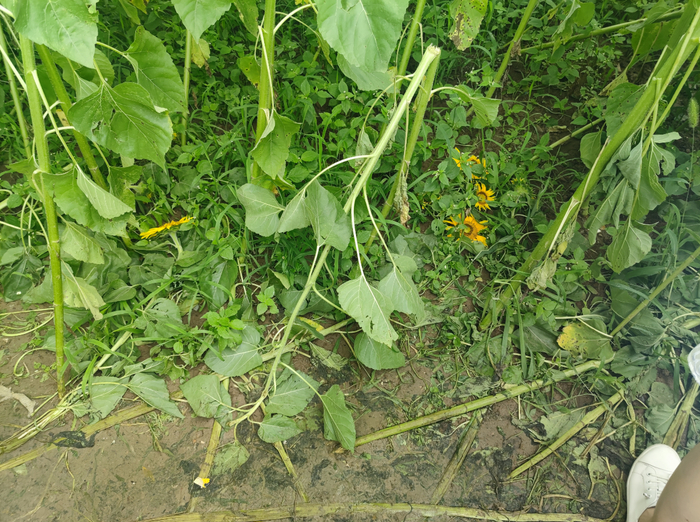 然而在美丽的花田中,频发的不文明现象实在是煞风景。明明不远处就是观赏道,还是有不少游客堂而皇之地走进花丛中,拉拽向日葵到身边,并强行扭转花枝。进出花丛的人多了,竟开辟出数条“小路”,其中一条游客踏出的小路里,分岔路多达五条。临近路边的向日葵受损最为严重,有的向日葵已整株倒在了地上,还有“断头”的。