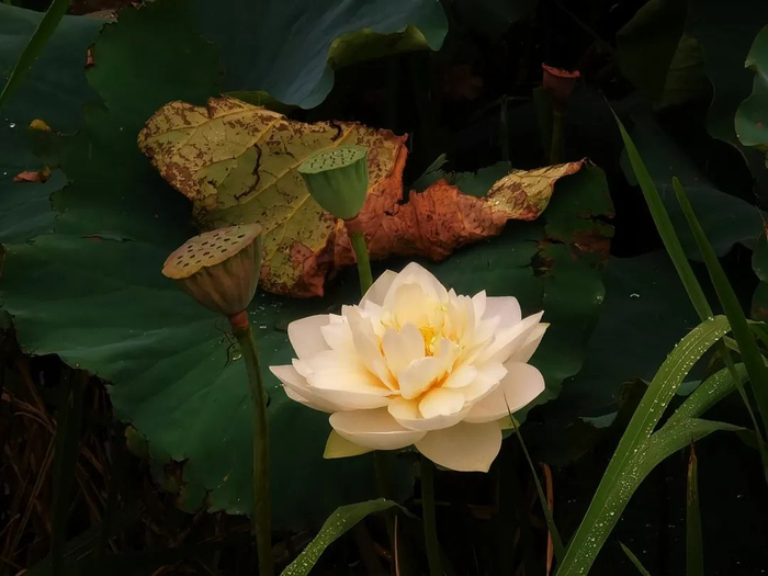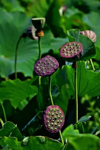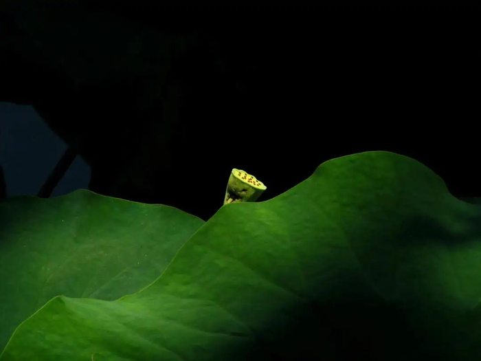 莲蓬像一个绿色的铃铛,内里孕育着可口的莲子。