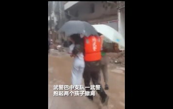 民警涉水将孩子转移到安全地带。 晋城市公安局供图