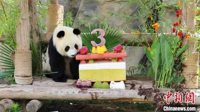 中新网上海7月17日电 (陈静 倪丽)上海野生动物园大熊猫七七满三周岁了。
