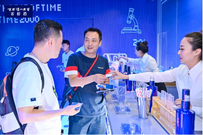 这就是百年泸州老窖窖龄研酒所(以下简称窖龄研酒所)成都站活动现场。外观时尚炫酷的沉浸式体验室在时尚繁华的春熙路一经出现就掀起一股蓝色风暴,众多潮男靓女走进窖龄研酒所,沉浸式体验窖龄秘境,通过潮酷、新奇的探索方式解锁一瓶好酒的品质密码,让消费者重新认识中国白酒。百年泸州老窖窖龄酒是中国白酒窖龄品类的开创者和领导者,作为泸州老窖核心战略单品之一,与国窖1573 共同构建了泸州老窖以窖池资源为核心的品牌体系。董虎杰表示,通过窖龄研酒所,展现出的是中国白酒超高颜值和深刻内涵,能够让经典的中国白酒焕发时尚潮流新姿,真正做到与年轻精英人士的龄距离。
