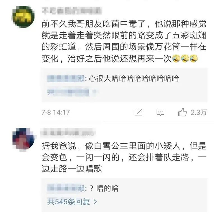 这些经历看起来很搞笑,甚至有些孩子听说吃蘑菇产生幻觉后,能看见小人跳舞或者各种猎奇的场面,觉得非常奇幻,忍不住想亲身体验一把,