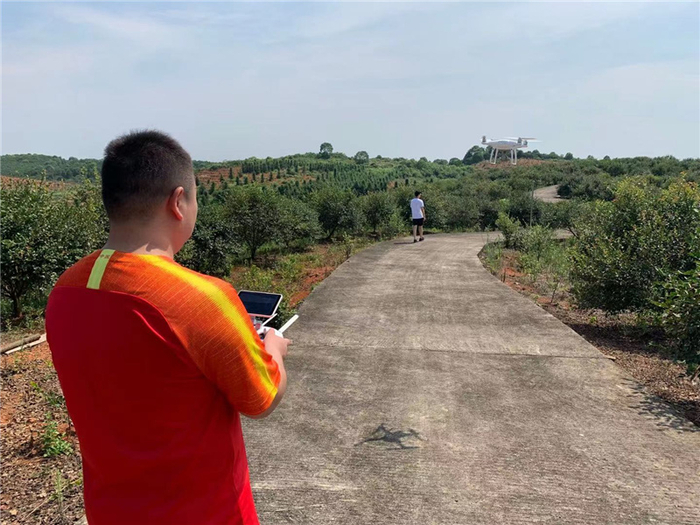 陈丹阳:好的,主持人,我现在正在宜丰县黄岗镇首届短视频大赛的创作现场,在我身后这片一千多亩的高产油茶林种植基地,来自全县的多名参赛选手,正在运用航拍、延时等多种拍摄手段进行油茶短视频的创作,正在操控无人机的尉自强告诉我,这次短视频创作他想用航拍拍摄跑酷的形式,在油茶林种植基地跑到油茶生产灌装车间,再跑到直播销售基地。用跑酷跑完整个油茶种植、生产、销售全流程。