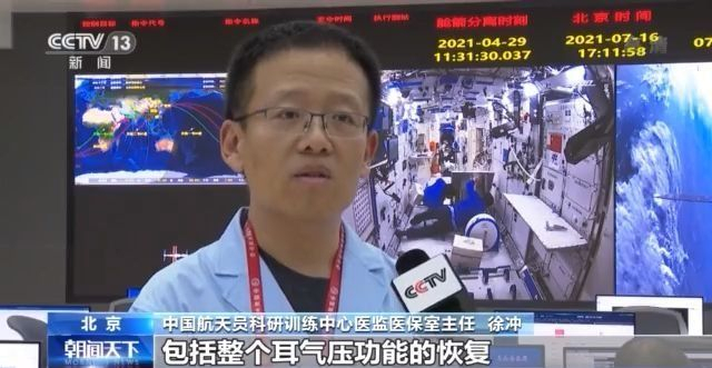 中国航天员科研训练中心医监医保室主任徐冲:从心血管功能的监测,包括疲劳的恢复,整个耳气压功能的恢复,鼓膜修复的情况也都非常好,没有因为出舱出现一些伤病、损伤。整个出舱的效果也非常好,航天员的身体、睡眠包括进食饮水、身体代谢的情况,营养、健康状况,经过我们综合评估是非常好的。