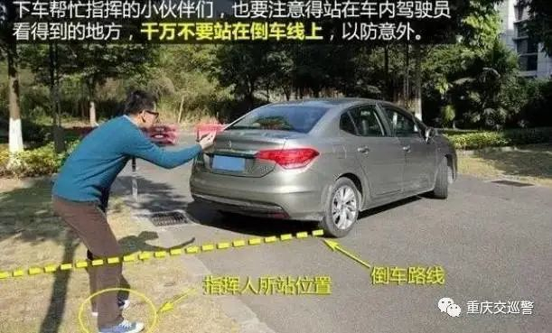 而对于下车帮忙指挥的小伙伴们,也要注意得站在车内驾驶员看得到的地方,不要站在倒车线上。