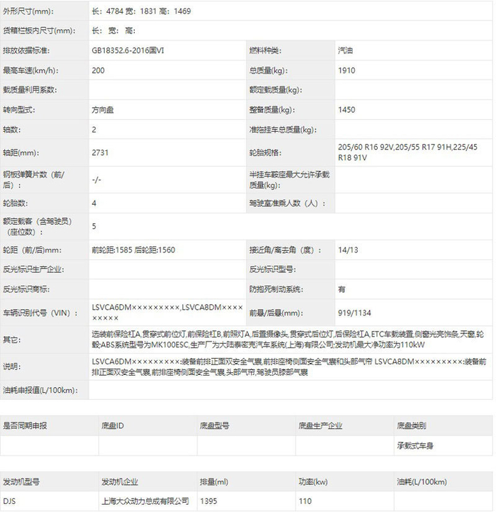 在车身尺寸方面,新车的长宽高为4784/1831/1469mm,轴距为2731mm,整备质量为1450kg,轮胎拥有205/60R16、205/55R17、225/45R18三种规格可供选择。配置方面,新车将根据不同车型提供贯穿式前位灯、后置摄像头、贯穿式后位灯、侧窗光亮饰条、天窗、轮毂以及前保险杠样式等多种配置选择。