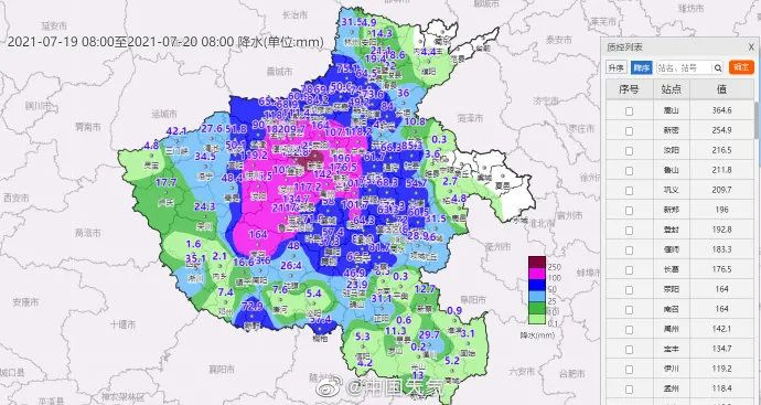 7月19日7时至20日7时,河南全省降雨量超300毫米站点17处,降雨量超200毫米站点136处,降雨量超100毫米站点632处。