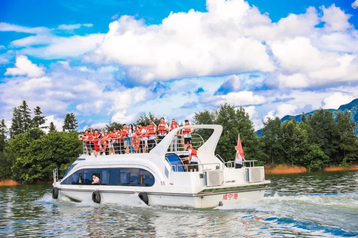 陆水湖风景秀丽,碧湖千岛,湖中岛屿800余座,群山怀抱,层峦叠嶂。夏日最惬意的事,不过徜徉在湖光山色里,青山碧水间,在湖中乘风破浪。