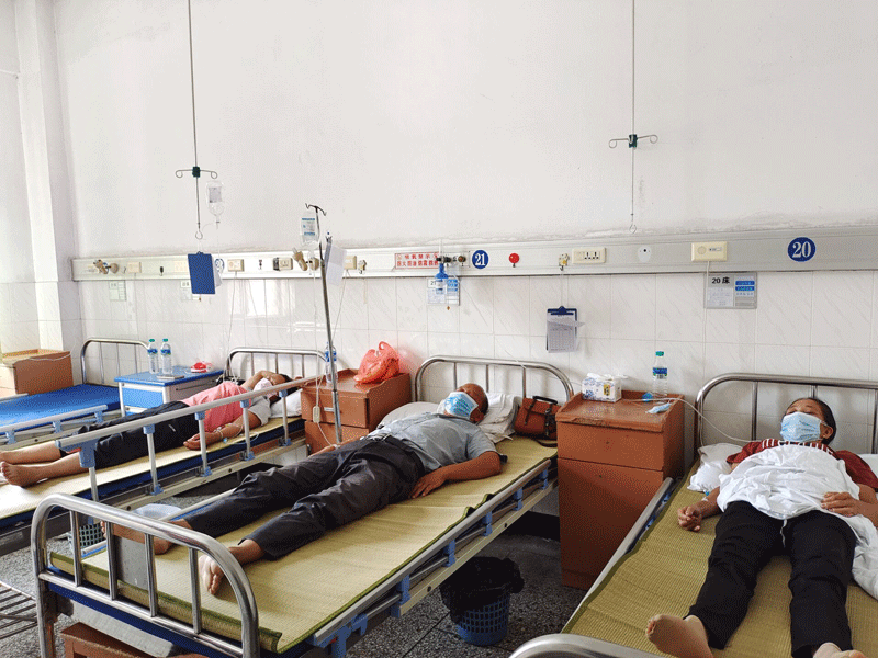 “中毒的有20多个人,都是在家里中毒的。”在会昌县人民医院接受治疗的52岁村民潘明招告诉记者。“我们这受污染的至少有50个人,一共有400多亩农作物枯萎。”赣州会昌县周田镇半岗村石虎岭组村民张人根说。