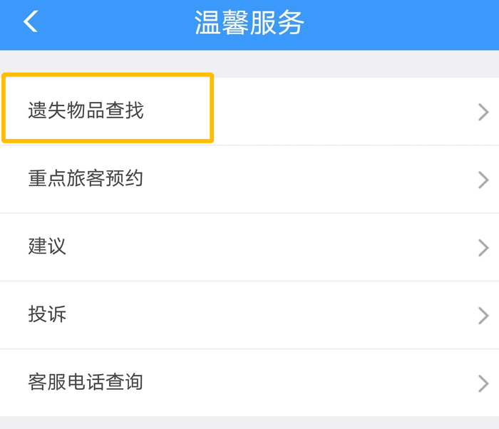 点击“遗失物品查找”