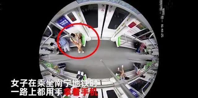 一女子在乘坐广西南宁地铁时