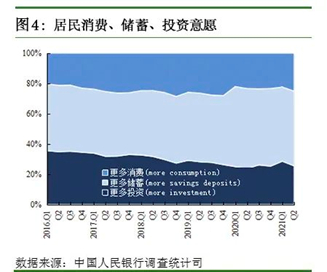 同时,根据中国人民银行本月初公布的第二季度城镇储户问卷调查报告,倾向于“更多消费”的居民占 25.1%,比上季上升2.8个百分点;倾向于“更多储蓄”的居民占 49.4%,比上季上升0.3个百分点;倾向于“更多投资”的居民占 25.5%,比上季下降3.1个百分点。