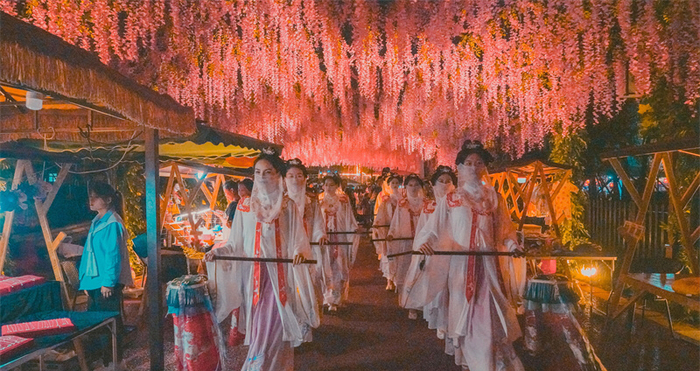 另外,7月16日,青岩古镇开启了“大明志”最新篇章——“大明志·荟 穿越青岩”大明游园会活动。为了此次游园活动,主办方在青岩古镇西门外的浪漫谷内,搭建了以大明盛世为背景的主题场景。