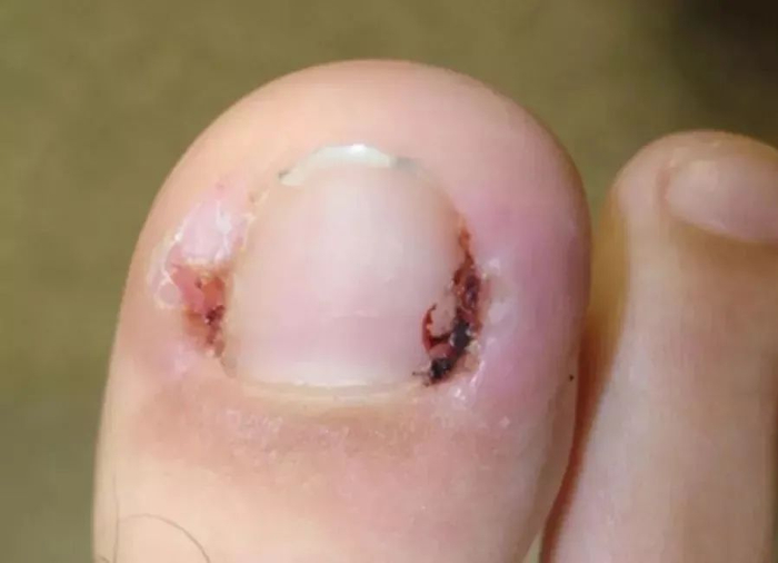 随着指甲继续向前生长,它的边缘会变成「钉子」,刺到肉里。