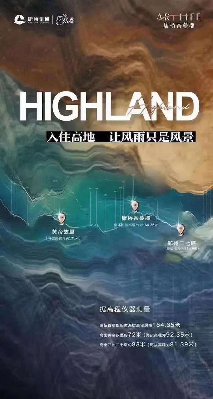 暴雨笼罩郑州的同时,灾情也牵动着全国人民的心。在灾情面前,康桥集团旗下楼盘的一则宣传海报引发网友关注。相关海报借暴雨关注度试图宣传其项目海拔高度,海报文案称“入住高地,让风雨只是风景”,被指借灾难营销。