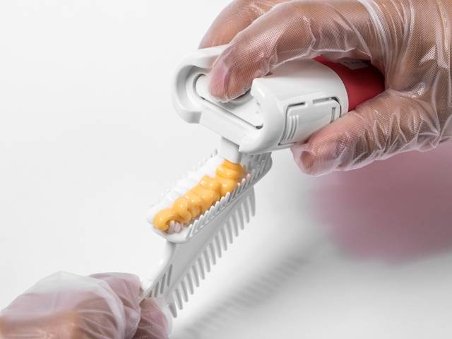 这个造型别致的梳子,能让染发膏在刷涂时不容易滴落、充分照顾到发根及发际等难以染匀的细节部位,同时也不会过分沾染到头皮皮肤,避免刺激。