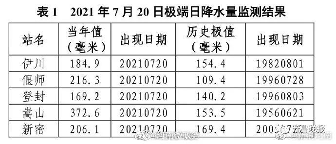 嵩山、偃师、新密、伊川、登封等5个国家级气象站日降水量突破建站以来历史日极值。↓