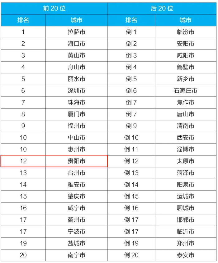 贵阳上榜!上半年168个重点城市空气质量排名公布