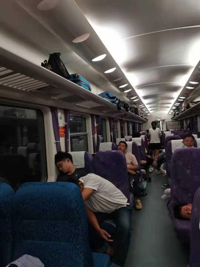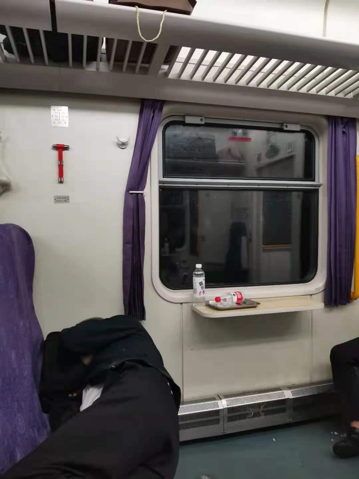 到20号晚上我们已经被困超过24小时。我们这一节车厢老人和小孩比较多,目前大家的情绪还是比较稳定。这趟火车正常是3天的行程,车里的热水够喝,但冲马桶的水和洗脸的水被停掉了。