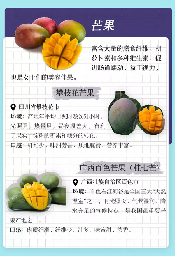 集热带水果精华于一身,被誉为“热带水果之王”的芒果,作为夏季的时令水果之一,它富含大量的膳食纤维,可促进肠道蠕动。夏季食用芒果还可生津止渴、健胃利尿,可谓是消暑佳果。
