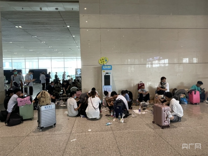 由于地铁公交等公共交通已全部停运,虽是大白天,临近停车场的出租车、公交车候车区域一片漆黑。大量旅客滞留在车站。一位小伙子告诉记者,20日晚上他在三楼候车大厅枕着行李在地上睡了一夜,那一晚正是滞留旅客最多的时候。