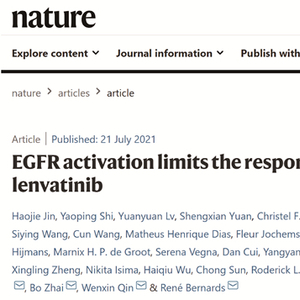 肝癌晚期患者,使用一种靶向药物恐怕身体“吃不消”,但使用两种呢?答案令人惊讶。选择特定药物,联合治疗的收益可能达到1+1>2,但不良反应却并没有增加!北京时间7月21日晚,国际著名学术期刊《自然》(Nature)在线发表了上海交通大学医学院附属仁济医院上海市肿瘤研究所覃文新团队、肿瘤介入科翟博团队、上海东方肝胆外科医院周伟平团队与荷兰癌症研究所René Bernards院士的合作研究成果“EGFR activation limits response of liver cancer to lenvatinib(EGFR的反馈激活限制了仑伐替尼的肝癌疗效)”。该研究发现,对仑伐替尼治疗无效的中晚期肝癌患者,如联合应用吉非替尼治疗,可有效抑制肝癌进展。