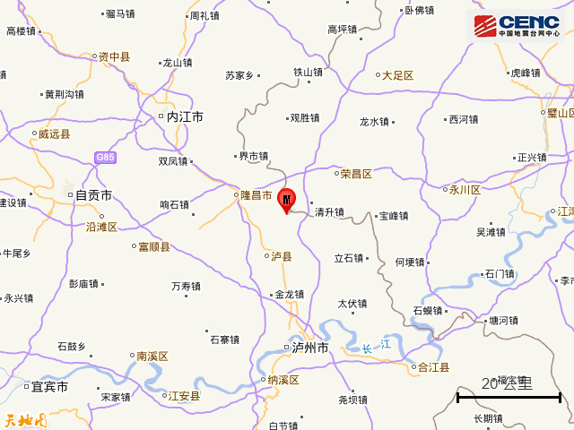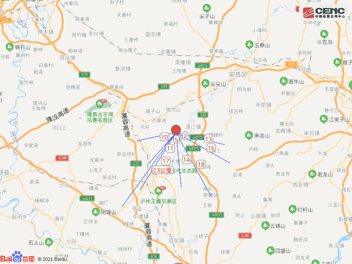 周边县城:震中距泸县15公里、距隆昌市16公里、距龙马潭区41公里、距江阳区45公里、距富顺县47公里,距重庆荣昌区23公里,距重庆市112公里。