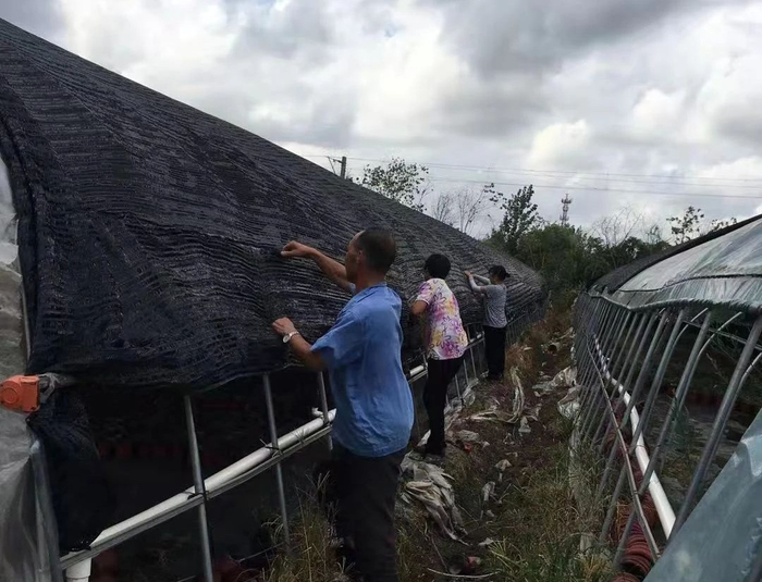 江桥镇农发公司及时对农村大棚及农业设施进行了加固,特别是铁路沿线、高压线路下的设施加固,预防大风造成设施倒塌,棚膜吹到铁路、高压线上造成重大事故。同时,安排相关人员落实明沟及时清理、田间排涝畅通,并抓紧抢收成熟的农作物。