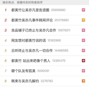7月19日全天、20日上午,关于吴亦凡事件的热搜多达十几条,高峰时段有近三十条。