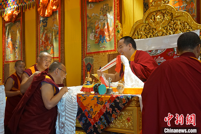 7月12日,班禅来到成都文殊院,礼佛开示。 中新社记者 郑巧 摄