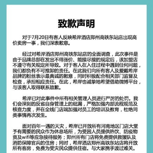 7月22日,希岸酒店官方微博发布声明称,“此次事件由于品牌总部在发出不得涨价、能接尽接的规定后,加盟店不遵守有关规定导致。”