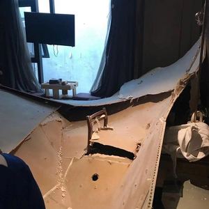 谈及当夜情景,崔女士仍心有余悸。当天凌晨1时多,她突然被一阵异响弄醒,起初还以为房里有老鼠。没过多久,她便感觉到头顶上有东西“哗啦”一声铺天盖地砸下来。“完了,是不是楼塌了!”事发突然,她本能用手脚向上挡了一挡。当时,身旁的女儿尚在熟睡,崔女士连忙把她从坍塌下来的天花板中“刨”出来。开灯后,母女俩惊呆了:原来整个顶棚石膏板坍塌,层层压在床上。后来,她们尝试徒手去抬天花板,发现根本抬不动。“还好我睡得浅,要不然后果不堪设想!”从其提供的现场照片来看,房间整片天花板脱落坍塌,灯泡、电线垂落在半空中。天花板在床面、地面上碎成几大块,其中有一部分甚至被椅子的靠背径直顶穿。