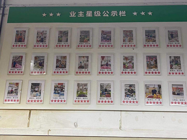 在制度上,黄埭农贸市场对经营户实行评分制度,最高分100分、95分以上为优秀业主,90分为合格,80分停业整顿,70分停止营业。其次对经营户实行等级评比,三星为基本业主,四星为好业主,五星为优秀业主,年底在摊位选择有优先权,并悬挂流动红旗供其他业主学习,激发市场经营向上向好的竞争氛围。同时要求市场内所有经营户必须亮证经营,市场管理员将所有营业执照和健康证集中挂在墙上,让消费者一目了然。另一方面该市场严格落实投诉制度,在显著位置悬挂投诉意见箱、意见本,通过严惩措施根绝交易市场缺斤少两不文明现象。