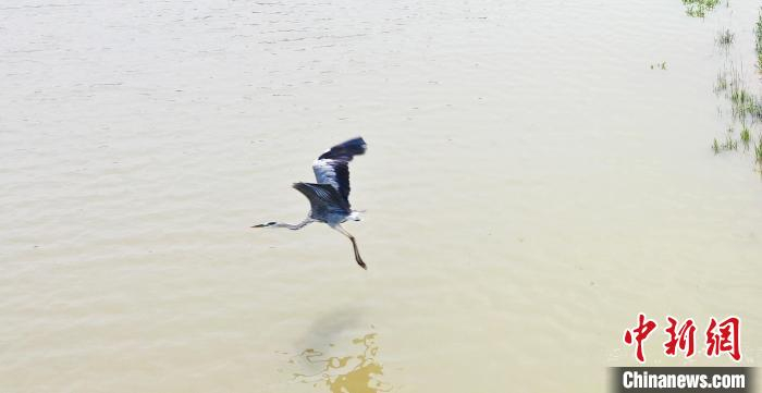鸟儿在南宫湖湿地公园飞翔。 田威 摄