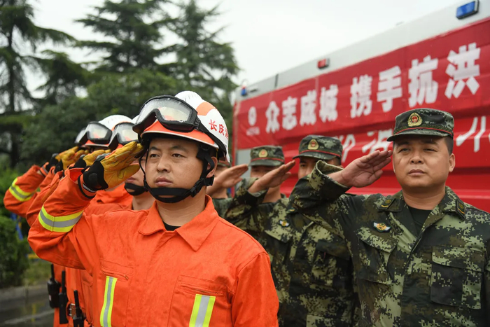 7月23日上午10时,34名救援队员乘坐指挥车、运兵车、大型水罐消防车、炊事车等车辆,携带泵组和手抬机动泵、机动链锯、无齿锯、双轮异向锯等专业救援设备器材,分别从甘肃庆阳和陕西西安、榆林市靖边县三地出发,用时18个小时冒雨急行992公里,到达指定地点。