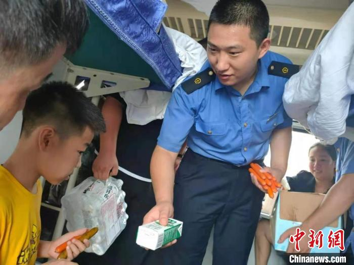 7月21日,列车折返途中在新乡北站再遇暴雨,停车待命。由于长时间运行和滞留,列车用水告罄。乘务组先后3次为旅客协调补充面包、香肠、牛奶、矿泉水等应急物资,尽最大能力提供餐饮保障。