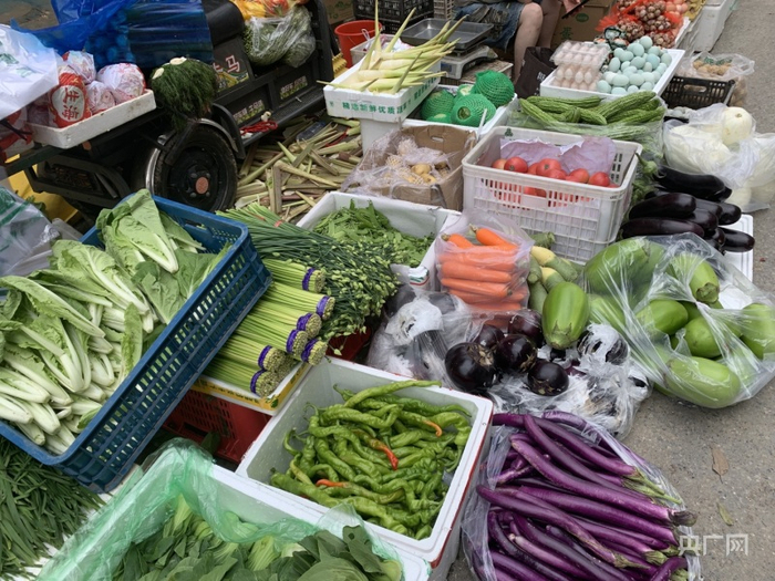 24日,早上6点,纬四路农贸市场恢复营业,摊位上摆满了新鲜的蔬菜水果,附近的居民有序采购。