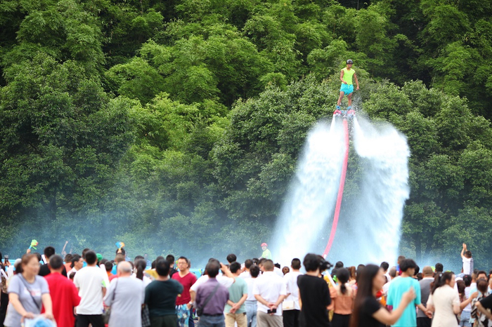 据了解,从7月16日至8月31日,为期一个多月的金佛山滨水露营音乐季狂欢,金佛山景区不仅准备了音乐和舞蹈。在金佛山灵官洞、燕子洞、药池坝等景点,每周末还有古典乐器演奏、武侠表演、古风巡游及各种武林互动游戏;在天星小镇,每周五周六,可以体验冲浪、泡沫狂欢大战、亲子捉鱼抓螃蟹、或是聆听乐队倾情演唱,参与穿越火线、眼疾手快、泥塑手作、香囊DIY、剪纸等互动体验。让游客们可以在夏季休闲避暑之余,体验丰富多彩的活动。无论你是想山中露营、戏水,或与家人参加清凉的夏季活动,金佛山无疑都是夏季旅游出行的绝佳去处。