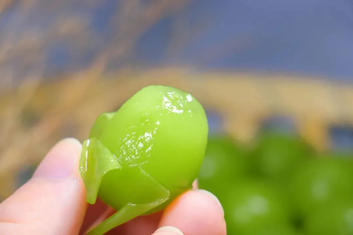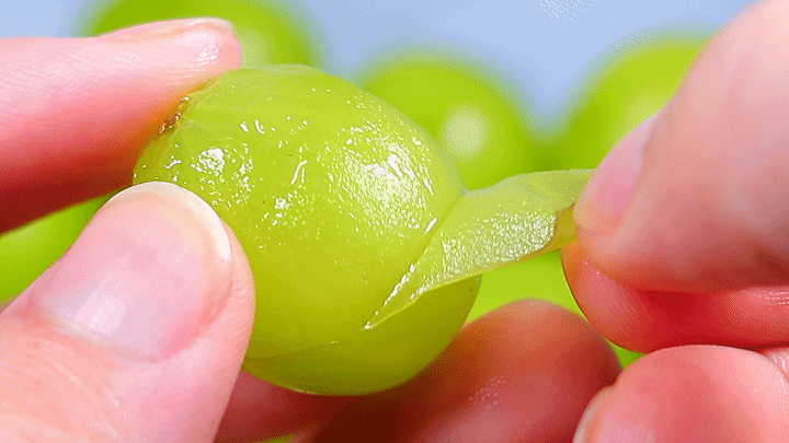 丢一颗青提进嘴,果皮“咔咔”脆崩开,甘冽的汁水瞬间在嘴里炸开,紧实Q弹的果肉在牙齿间弹来弹去。