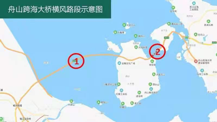 舟山跨海大桥横风路段示意图(央广网发 舟山市公安局高速交警支队供图)