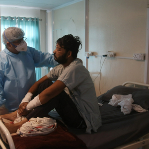 当地时间2021年6月3日,印度阿杰梅尔,医生为一名黑真菌感染患者进行检查。/IC photo